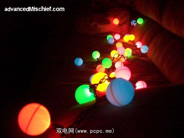 LED的魅力在于,到目前为止,您可能已经从建议中注意到了这一点。列表,其巨大的灵活性。这要归功于其紧凑的尺寸,在这个DIY照明项目中,一串圣诞灯被馈入了许多乒乓球(在eBay上为144个球,价格约为10美元),创造了一串有趣,多彩,分散的灯光。