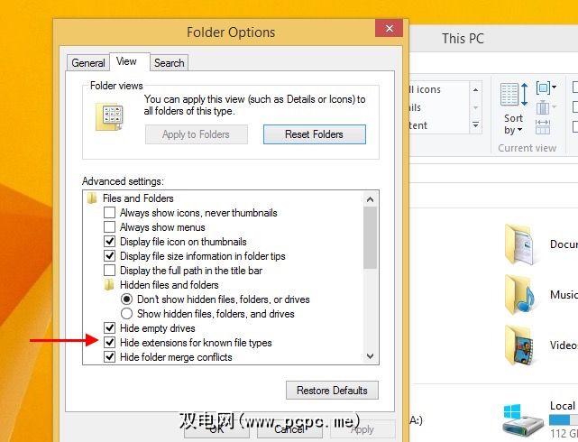 在这种情况下,请转到控制面板>文件夹选项,然后取消选中隐藏已知文件类型的扩展名。按下确定后,可以通过右键单击>重命名,或只需在所需文件上按 F2 即可访问扩展名。