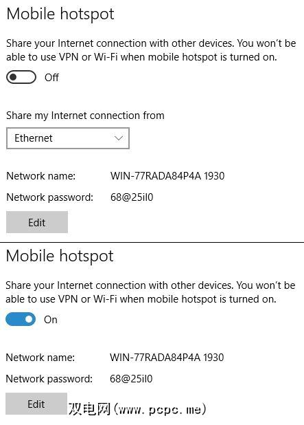 如果尝试使用现有的Wi-Fi连接创建热点,则将无法使用传入连接访问该系统上的Internet。但是,如果您具有有线以太网连接,就可以直接连接到网络。