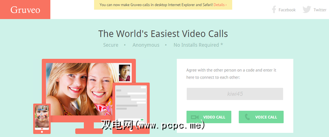 如果不需要太多选项或与多方通话的能力,Gruvoo是一个不错的选择。双方协商通话的“自定义代码"后,通话即开始。该代码位于URL的末尾。而且您不必担心其他人会加入您的通话,因为它最多可通话两次。