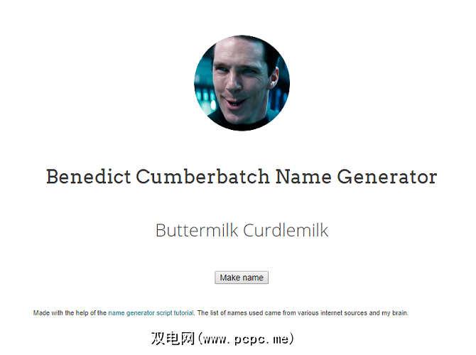 本尼迪克特·康伯巴奇(Benedict Cumberbatch)和他的名字经常被误读,已经成为一种互联网模因。该网站将允许您通过随机选择器来制作自己的本尼迪克特·康伯巴奇(Benedict Cumberbatch)名称,该随机器会选择相似的发音词。如果您已经知道模因,那么您会觉得很有趣,但是尽管如此,它还是一个值得拖延的好网站。