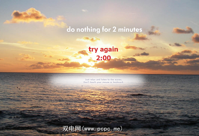 所有人中最艰难的挑战:绝对不做任何事情。该网站在屏幕上显示了一个两分钟的计时器,您必须尝试在此期间不进行任何操作。如果移动鼠标或按某个键,将失败。拖延的好方法,还可以让您有时间思考为什么要浪费时间。