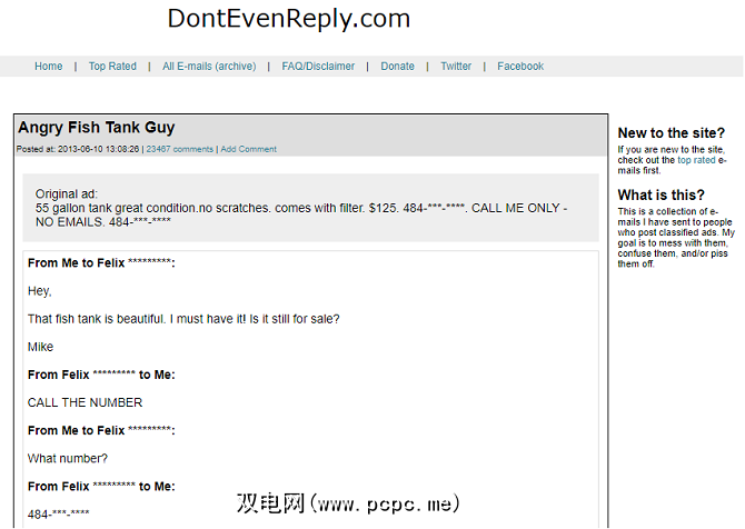 “甚至都不要回复"与带有关于穷人的轶事的子目录相似,只是该网站上有电子邮件。该网站的创建者发送了大量电子邮件给毫无疑虑的分类广告人,“甚至没有回信"将使您持续工作数小时。