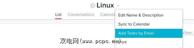 还有另一种查找项目ID的方法:在边栏,单击主体部分中项目名称旁边的小箭头,然后单击下拉列表中的通过电子邮件添加任务。