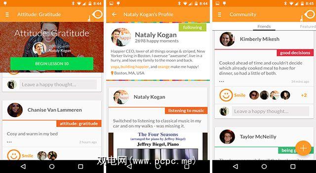 这是更快乐背后的基础,该应用程序将感激日记的概念与社区结合在一起,以一种简单的方式