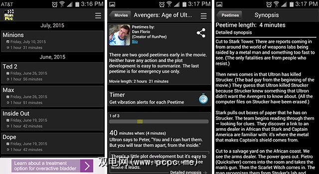数据库随着电影的发行而更新,因此如果您倾向于看电影首映时它可能没有用。但是,如果您等待一两天,则RunPee可以正常工作。