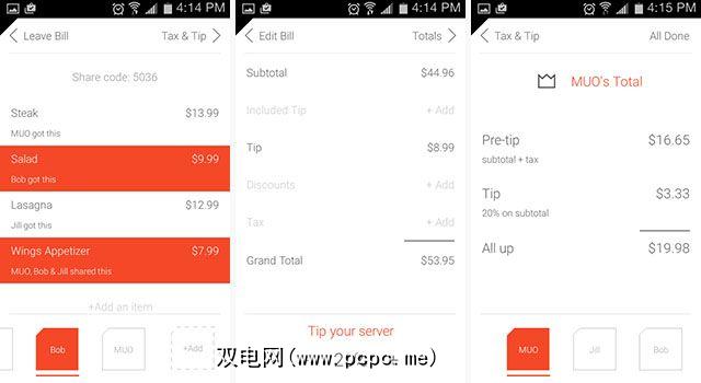 然后,根据每个人相对于其他每个人花费的费用,按比例分配税金和小费。容易吧?唯一的缺点是Tab暂时仅在美国提供,尽管他们确实计划将来进行扩展。