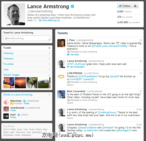 了解到许多人正在寻找Lance Armstrong的Twitter提要也许并不奇怪。兰斯(Lance)已经拥有近350万个Twitter关注者,但每天都有更多人希望加入他的Twitter读者群。