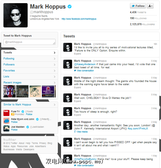 很明显,我不经常关注娱乐业务,因为我很尴尬地承认我不知道马克·霍普斯(Mark Hoppus)是谁,也不知道为什么他的Twitter提要如此受欢迎。我一个人吗?
