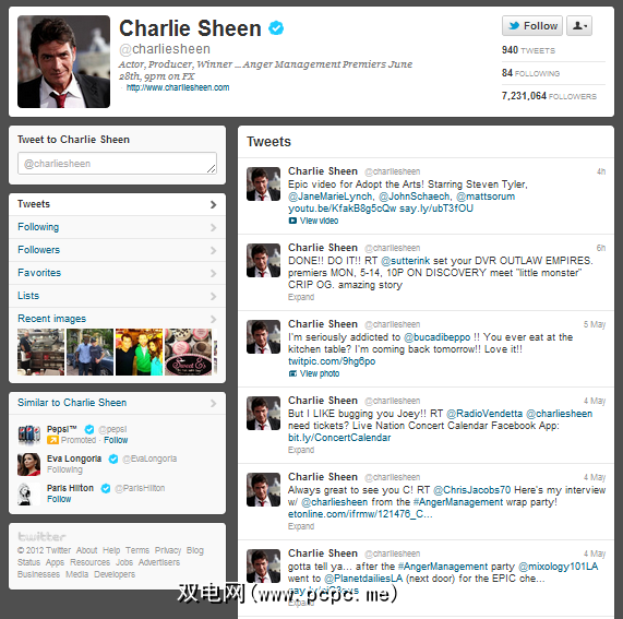 看来,他的疯狂阶段已经开始。要么,要么现在人们开始对他的滑稽动作免疫。查理·希恩(Charlie Sheen)的Twitter流现在有720万关注者,每天都有越来越多的人试图找到指向他的Twitter帐户的链接。