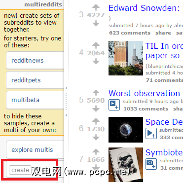 制作它们很简单。展开屏幕最左侧的multireddit标签,然后点击创建。给它起个名字,然后再次点击创建。