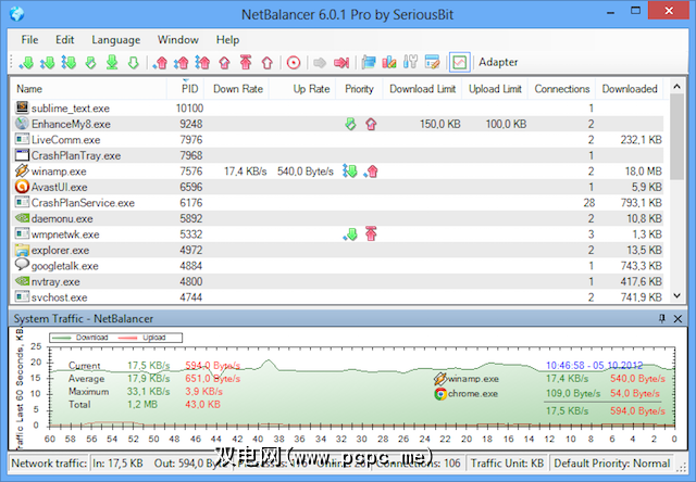 借助NetBalancer,您可以查看和分析网络上的网络流量Windows计算机。您可以查看哪些程序使用的带宽最多,并在需要时对其进行限制。