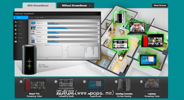 Qualcomm的StreamBoost技术在D-Link和NetGear的多台路由器中实现,可自动分析流量并无需执行任何操作即可调整带宽分配以适合每个应用程序。