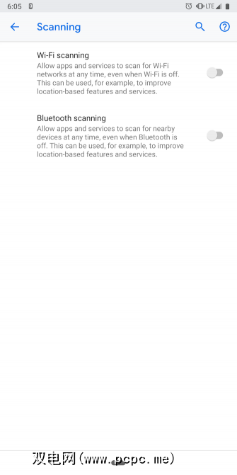 前往设置>安全和位置>位置以切换此选项。如果您使用的是Android Pie,则需要更改其他选项。访问设置>安全性和位置>位置>高级>扫描,您可以禁用 Wi-Fi扫描和< strong>蓝牙扫描。