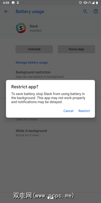 通过简单的开关,您就可以完全限制应用在后台访问电池。在设置>应用和通知中找到此内容,然后在特定应用页面内,点击高级>电池>背景限制。