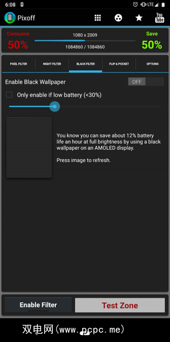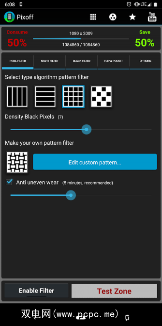 如果您对较暗的渐变不满意,还可以通过名为Pixoff的第三方应用手动关闭像素。该应用程序还可以采用几种可用的网格模式之一来快速执行操作,例如停用一半像素。