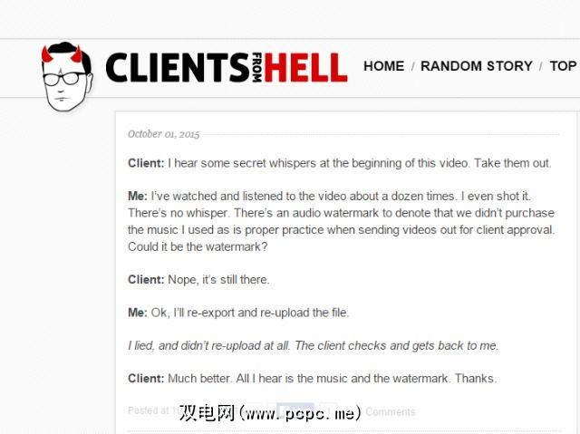 一天的日子可能糟透了知道别人在恶化,真是令人惊讶。地狱客户(Clients From Hell)是一个网站,该网站会不断更新更新,以应对人们对消息灵通和沮丧的客户的需求。