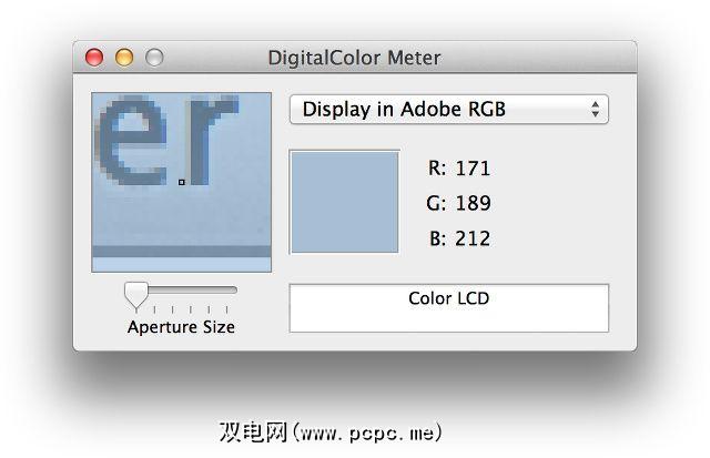 该实用程序为您提供了RGB屏幕的选定部分的值(如以及其他个人资料)。您甚至可以将光圈设置为不同的大小,这样您可以减小到一个像素小,但也可以将其增加到几个像素,并从所有这些像素中获得平均值。
