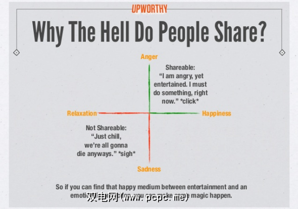 这包括使他们敬畏的科学文章,以及激发他们或使他们发笑的帖子。尽管引发愤怒或焦虑之类的强烈情绪的内容往往效果不错,但故事越积极,就越容易被分享。