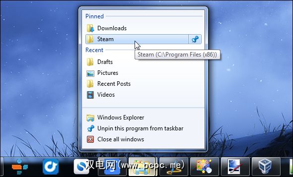 以后,当您要访问固定的文件夹时,只需右键单击任务栏上的Windows资源管理器图标,然后选择要访问的文件夹。无论是否打开Windows资源管理器,它都可以工作。