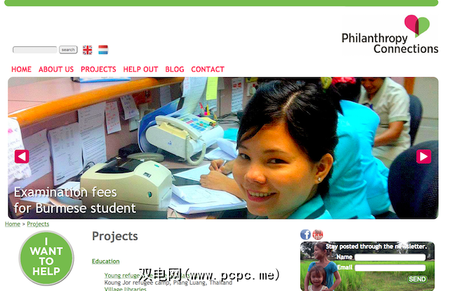 慈善事业联系网总部设在泰国,他们将慈善注意力集中在泰国,柬埔寨和缅甸(尽管他们是现在也对尼泊尔有所帮助)。他们寻找有信誉的当地团体,他们致力于改善他人在健康,教育,社会正义和扶贫领域的生活,并通过捐助者的外部资金帮助他们。他们用“慈善事业联系"这样的话说:“他们每天都在地面上工作"给当地人,“他们说英语,他们了解文化"。