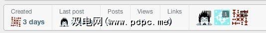 此信息栏仅显示在线程的第一条帖子下方,一目了然地显示该线程的重要统计信息:该线程创建于三天前,最新更新于两天前(似乎并非每次重置演示网站都删除了所有帖子)。其他统计数据也很容易理解,最后的头像会向您显示谁在参与。