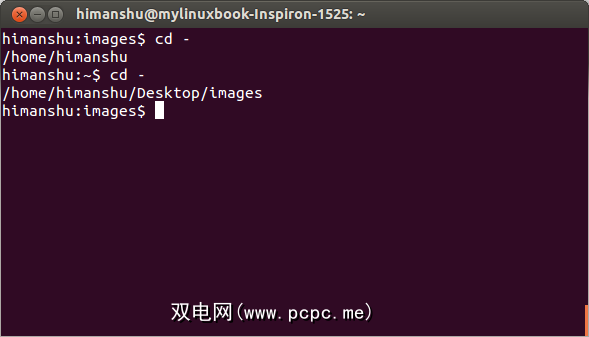 提示:如果必须跳在两个目录之间重复-例如,在 / home / himanshu 和 / home / himanshu / Desktop / images – 不要使用 cd 命令后跟完整路径-这是浪费时间。相反,您可以简单地使用 cd-,其功能几乎类似于浏览器中的``返回''按钮: