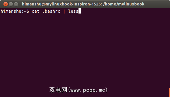 符号|称为管道,用于将一个命令的输出(作为输入)定向到另一命令。在这里,它将 cat .bashrc 命令的输出(作为输入)定向到 less 命令–这使得