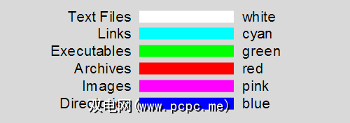不同的颜色(请参见上面的输出)代表Linux中不同类型的文件。您应该了解的一些基本颜色如下: