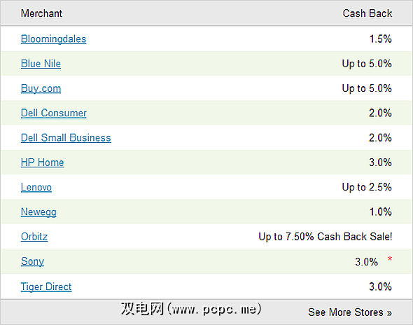 关于是否有资格使用Cash Back计划的无用赠品是在项目说明中提及任何百分比的现金返还。例如,如果您转到FatWallet主页,则在绿色的美元符号旁边找到一个百分比。