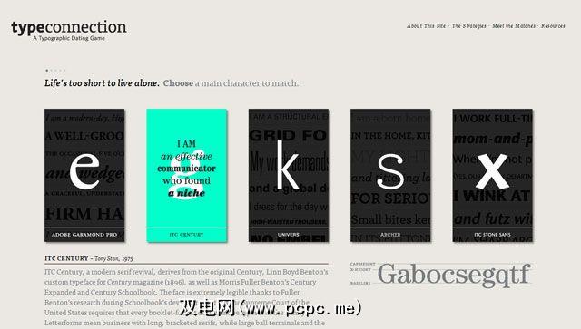 我们之前已经详细介绍了设计极为出色的“排印约会游戏"。字体还需要一种叫做和声的东西才能和谐共处。就像现实生活中的角色一样,寻找与伴侣之间良好关系的最佳选择。 TypeConnection允许您播放丘比特并使字体相互匹配。只有最好的夫妻才能做到。您可能正在扮演天使,但也有很多收获—学习印刷术术语,类型历史,以及正确的配对。如果您真的想真正输入文字并了解印刷术的更多信息,那么该网站的“资源"页面是一个宝库。