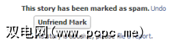 一旦您将某好友的一则贴子标记为垃圾邮件,Facebook就会向您显示一个“取消好友"按钮。单击它可以将该人从您的朋友列表中删除。