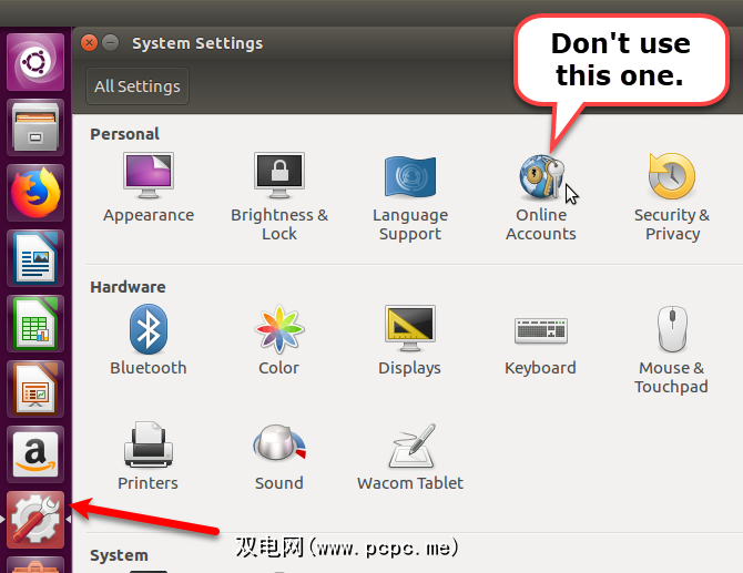 Ubuntu中的系统设置包括一个在线帐户 >部分,但这不是我们要使用的部分。我们将在Gnome控制中心中安装Gnome在线帐户。