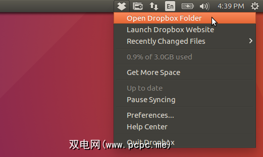 Dropbox是一个不错的选择,因为Ubuntu的Dropbox客户端的工作方式与Windows上的Dropbox客户端类似。文件已同步并存储在硬盘驱动器上的文件夹中,您可以选择Dropbox帐户中要同步的文件夹。在Ubuntu中安装Dropbox时,在顶部面板上会显示一个指示器,可用于访问Dropbox功能。