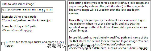 输入所需锁定屏幕图像的路径,然后单击确定。您还可以在锁定屏幕上关闭有趣的事实,提示等。