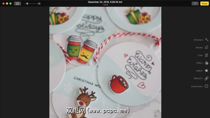 Mac Photos应用程序还具有基本的照片编辑功能,包括增强功能,裁剪,旋转和过滤。所有编辑都将在您的设备之间同步。
