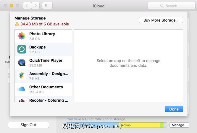 要在Mac上管理iCloud存储,请转到系统偏好设置 iCloud 。您可以查看哪些Mac应用程序链接到您的iCloud帐户,以及关于如何使用iCloud存储的相同分类。您可以删除每个设备的备份,也可以删除单个应用程序的备份。