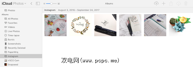 登录iCloud时,单击照片按钮可查看您备份的照片。只要您在iOS设备上启用了该选项,这将包括保存到云存储中的所有iOS照片。