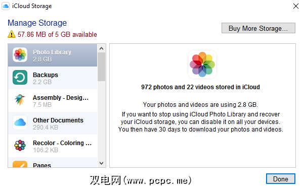 要在Windows计算机上管理iCloud存储,您将需要下载Windows版iCloud。就像在Mac上一样,您可以看到存储的使用方式,可以删除现有备份,还可以在不同位置访问iCloud的各种功能。