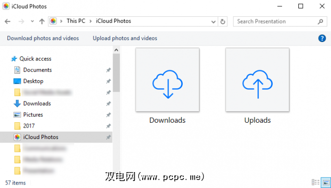 在iCloud中打开照片选项时,将打开一个新文件夹可以在计算机上创建,也可以在Windows资源管理器的“快速访问"菜单中找到。在此文件夹中,您将有两个文件夹-一个用于下载和上传。您可以手动将照片复制到“上载"文件夹中,以将Windows计算机中的照片复制到iCloud存储中。