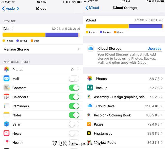 在管理iOS设备上的iCloud存储时,您可以删除从iPhone进行的所有备份,包括照片。您还可以控制将哪些应用程序和文件类型备份到您的iCloud帐户。
