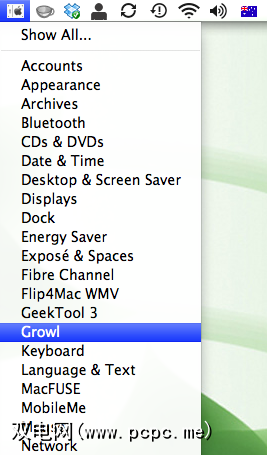 嗯,有个出路。 iThink Software的编码人员也对Apple Preferences感到恼火,并决定编写MenuPrefs以使其更易于管理。现在,您现在可以通过菜单栏访问所有喜欢的Apple Preference窗格,而不是单击后单击。最后,现在有了一种快速的方法来访问您的声音首选项,打开和关闭Growl并更改您的节能设置。