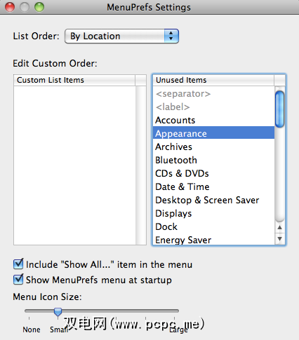 这些首选项使您可以选择在启动时打开MenuPrefs,如果您想继续使用它会很方便。您还可以选择是否在菜单中显示图标以及这些图标的大小。