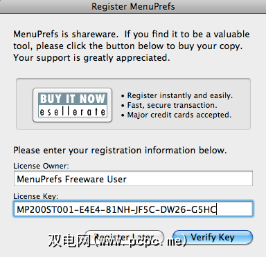 MenuPrefs是免费的,可从iThink软件网站上获得。他们公开制作了一个较早版本使用的序列号,同时致力于使一个完全免费的产品可以使用。