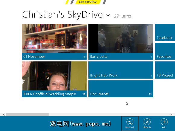点击或单击“ SkyDrive"图块打开后,即可开始浏览其内容。