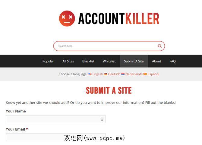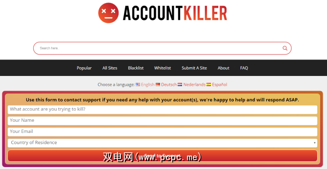 让我们来探索AccountKiller,这是一个专门教您如何做到这一点的网站。