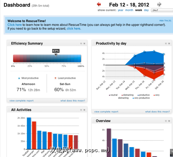 RescueTime的开发人员在其在线服务的精简版版本中提供的产品非常慷慨,它提供了一些非常重要且有用的信息,说明您如何将时间花费在电脑。但是,RescueTime的Pro版本提供了特定的活动详细信息,这些活动详细信息提供了有关特定文档,网页,聊天窗口等的报告。它还提供了其他功能,用于跟踪脱机时间,接收与您设置的生产率目标相关的时间警报,并帮助您阻止分散Internet的注意力。基于使用RescueTime的第一周,我计划订阅几个月的Pro版本,以便我可以更好地利用自己的时间管理系统。