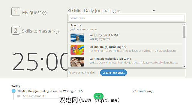 Persevy将Pomodoro技术与跟踪您的计算机操作结合在一起。注册后,系统会提示您为任务命名。 “任务"是目标,分布在几个25分钟的生产力会议中。您可以自己进行新任务,也可以选择“玩"其他用户创建的任务之一。例如,如果您首先写“ programming"(编程),则可以从下拉建议的相关主题中进行选择。