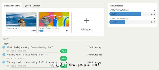 Persevy列出了每日统计数据,以显示您今天所取得的成就以及图表您在数周和数月内的进度。这些图表按上述技能进行了排序,因此您可以了解自己的技能构建方式,而不是只是简单地勾选任务。有关任务进度和当前技能水平的数据可在您的个人仪表板上找到。