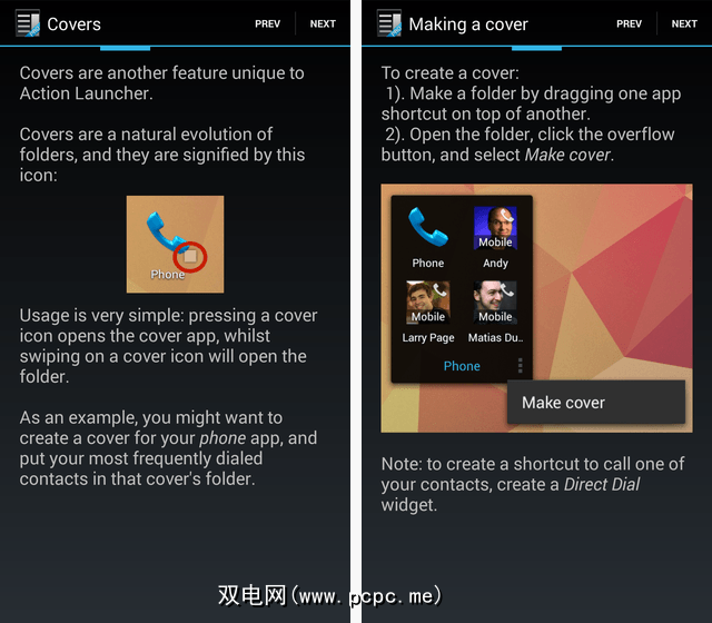 就像许多其他Android应用一样, Action Launcher会在首次启动时引导您完成入职序列。对我来说,这是个红灯:如果您的应用程序过于复杂以致无法使用,需要您逐步指导我完成教程,那么它可能会有些棘手。由于前面提到的“快门"和“封面",此处确实需要该教程。以下是Action Launcher解释Covers的方式: